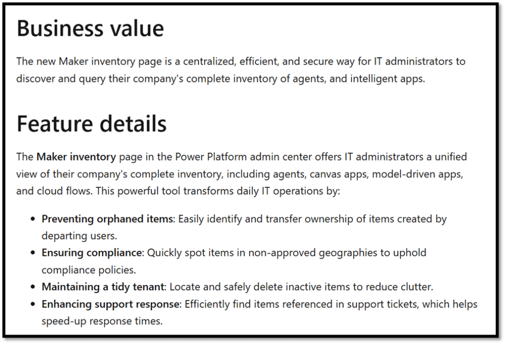 Governance and Admin has a lot of things to be excited about. One of those things is a native inventory of the apps, flows and agents within your tenant. Limited information though due in public preview very soon (March 2025). The reason I find this exciting is because though this feels like something we’ve already had through the installation of the COE starter kit, by having this native within the platform it starts to make me wonder what direction Microsoft may take with this. I’d figure (or I’m hoping) this may be the start of more to come. Perhaps we’ll start to get long desired controls and actions that Power Platform admins have longed for when it comes to governing solutions in the tenant. It’s a great demonstration of the good attention and investment that the Power Platform admin centre has received in this release wave – a long with other features like the upcoming GA of the new Power Platform admin centre, and the deployment hub for Pipelines.