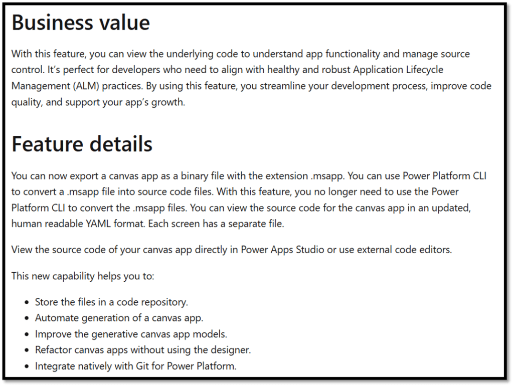 On Monday 4th March, Microsoft confirmed that the Code View in Power Apps studio has now reached General Availability. I think the last few months and 2025 looking forward takes big steps in redefining, or continuing to redefine how we’re building apps – and this is a key part of that for me. Not much information available on this feature in particular but combined with the Code view, we’ll be able to view and manage the source code of canvas apps, generate canvas apps from YAML, commit changes without using the designer and integrate natively with GIt. This is a great step in the maturity of development practices within the platform, and I think this is a great tool for building high quality apps, faster with less effort. Excited about the direction of this.
